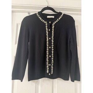 ZARA KNIT Black Faux Pearl Embellished Cardigan Sweater Womens Size Small Beaded