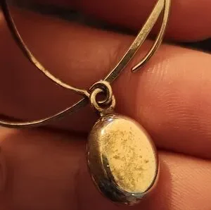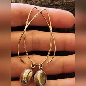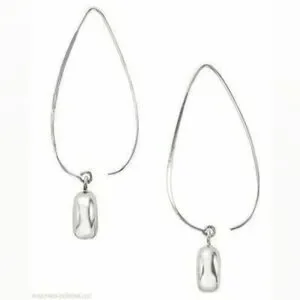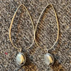 Design: The earrings have an open teardrop-shaped wire that threads through the ear, with a smooth, polished oval pendant attached at the bottom.