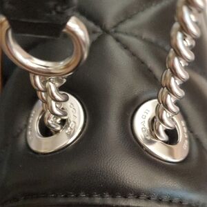 This Coach Klare 25 Black Puffy Diamond Quilted Crossbody Shoulder Purse, style CJ611, made in 2023 and in very good to excellent pre-loved condition.