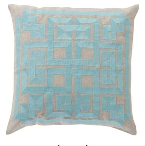 Set Of Two Greek Key Print Pillows 21x21" Aqua Linen Zip Closure Made in India