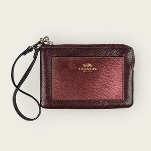 Coach Burgundy Metallic Leather Crossgrain 2 Tone Wristlet