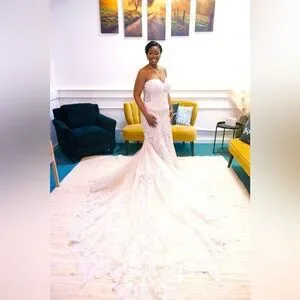 Worn: Only twice for try-on in the bridal boutique and on my wedding day. **Cleaning needed