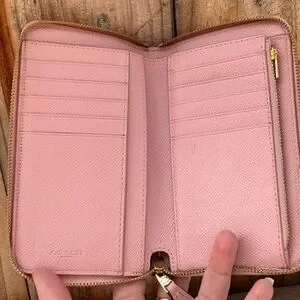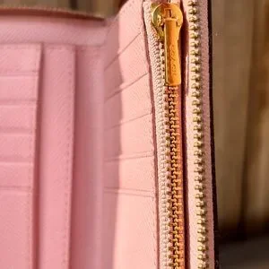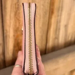 COACH Pink Crossgrain Leather Zip-Around Wallet RETAILS $238