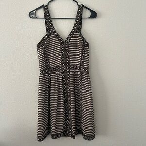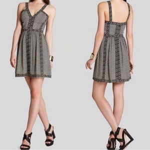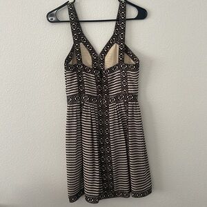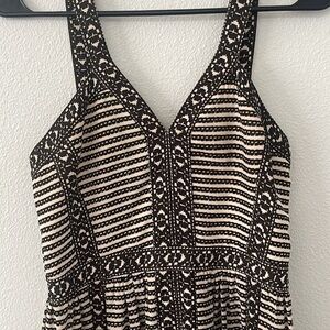 BCBGMaxazria Dress with a stand-out boho print in black and cream. Has a great neckline with Y-style straps and a figure flattering fit.