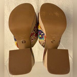 Make a bold style statement with these Cecilia New York platform slide mules, featuring a vibrant abstract multicolor print and chunky retro-inspired heel. These are the kind of shoes that turn a simple outfit into a look — perfect for Y2K revival, artsy dressing, or vacation styling.