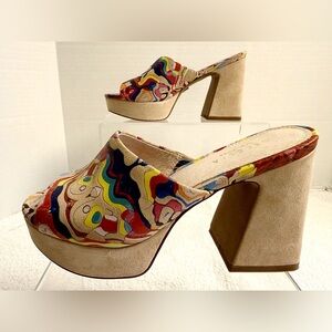 Cecilia New York Platform Slide Mules – Abstract Print | Size 6.5