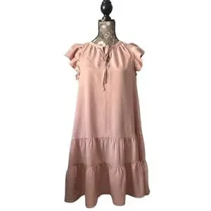 Knox Rose Women's M Light Pink Dusty Rose Short Sleeve Mini Ruffled Tunic Dress