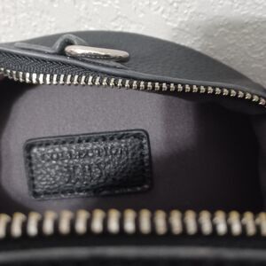 COLLECTION XIIX black, round crossbody with silver studs on the front and features inner slip-in pocket and a slip-in pocket on the back