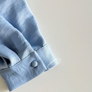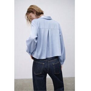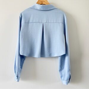 ZARA Satin Cropped Button-Front Blouse Light Blue Size M Minimal Chic