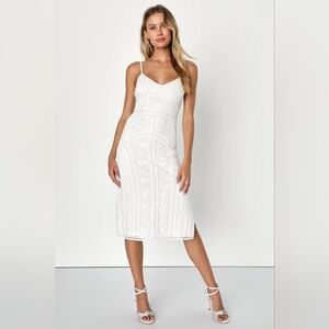 Lulus Alluring Interest White Sequin Embroidered Sleeveless Midi Dress S Wedding. New without tags. See all pictures for details.
