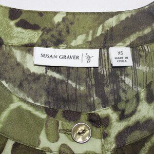 Susan Graver Olive Green Animal Print Blouse