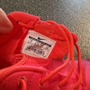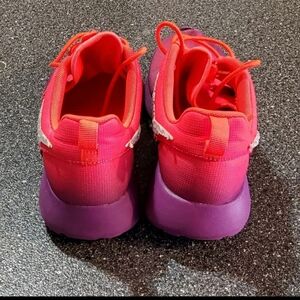 Nike Women's Roshe Pink with Purple bottoms Gently pre-loved sneakers size 7. Photos 1, 3, and 4 are stock for Illustration Purposes Only!