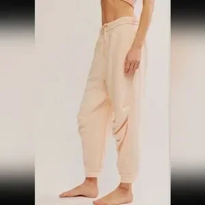 New! Free People Day Off Fleece Oversized Joggers in Tender Peach