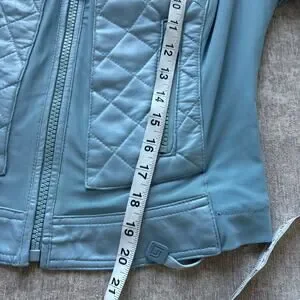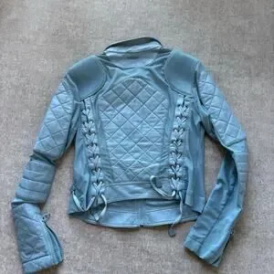Blanc Noir Blue Leather Moto Mesh Jacket