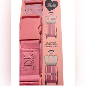 Travel in style with this Juicy Couture pink adjustable luggage strap, brand new in packaging.