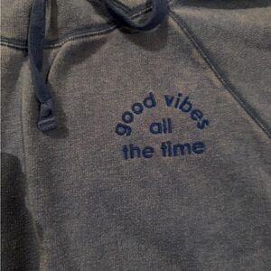 Cozy Victoria Secret Pink blue hoodie with front design “good vibes all the time”. Perfect for casual outings.