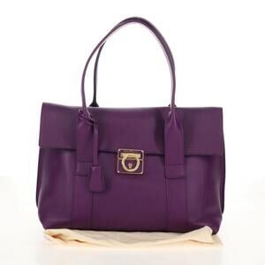 Salvatore Ferragamo Gancini Hand Bag Leather Purple Gold Auth BA8415V