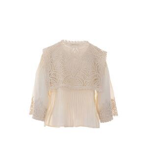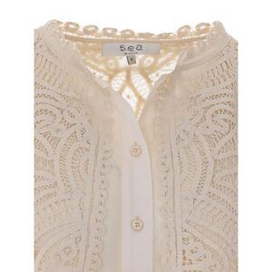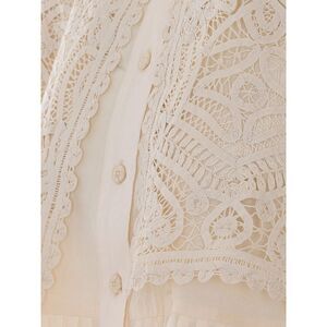 cream beige embroidered lace button closure long sleeves embroidered detail scalloped trim