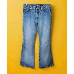 Vtg Express Jeans Size 9/10 SHORT Extreme Flare Distressed Light-Medium Blue Y2K