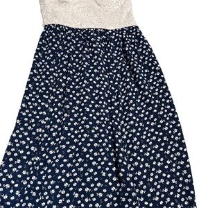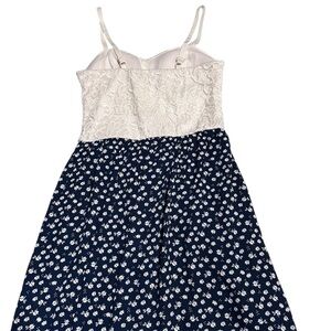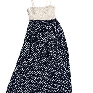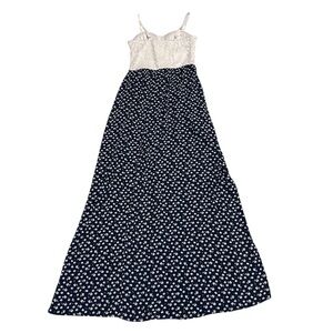 Candie’s Women XS Lace Bodice Navy Floral Maxi Dress Spaghetti Strap