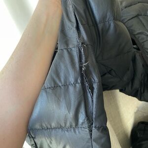HBC black down blend puffer coat. Super warm and stylish, hoc stripes peak out from inside and on the zip pull (so has some fun but it's not in your face).
