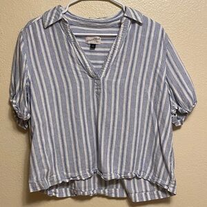 Universal Thread Women's Relaxed Fit Linen Rayon Blend Popover Blouse