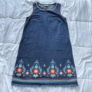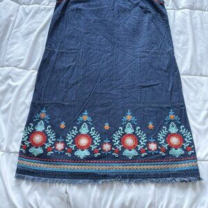 J. Jill Denim Womens Small Embroidered Sleeveless Midi Dress Cottagecore Peasant