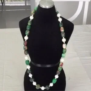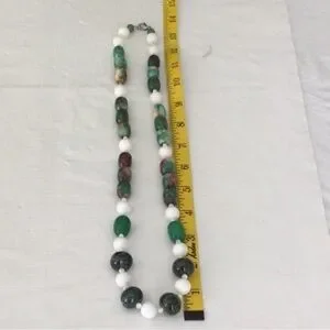 Woman’s Stone Necklace with clasp color green white some red