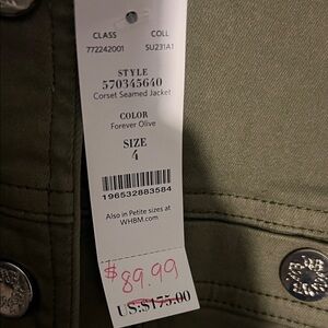 NWT - Size 4 - White House Black Market Utility Jacket in Olive