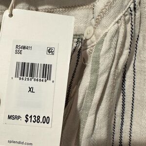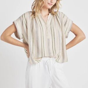 New with tags! Splendid Priya Button Down Top, size XL. With exaggerated shoulders and a boxy fit, the Priya Button Down Top will earn you compliments. It's made from a yarn dyed linen blend with a dreamy stripe pattern. Wear it tucked or untucked-- either way, it gives off main character energy.