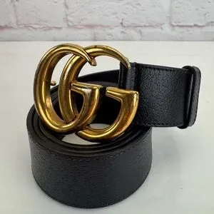 Gucci Brown Double Gg Marmont Leather Belt Gold Buckle 406831 90/36