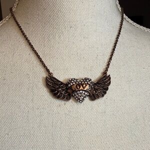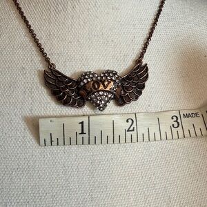 BETSEY JOHNSON WINGED HEART NECKLACE “LOVE” SPELLOUT COPPER CRYSTAL PAVE 18” EUC
