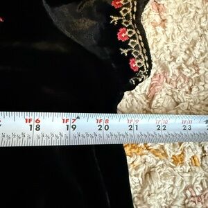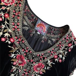 Johnny Was medium Black Velvet Cap Sleeve Embroidered V-Neck Boho Blouse Top