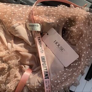 HOUSE OF CB/ Sorrel Blush Vintage Pink Polka Dot Ruffle Frill Lace Mini Dress