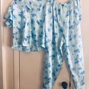 Comfortable floral pajama set in blue and green. Perfect for lounging.