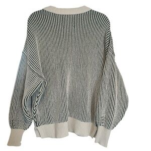 Aerie Beyond Chenille Oversized Sweater Green and Cream Striped Pattern- Size S