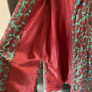 Gorgeous puffy coat by NY brand Wray (RIP). Coolest colour-way of chocolate brown, clean green, and robin egg blue—sooo perfect. Coat closes with belt. 2 big front pockets, side slits. Effortlessly chic and cozy. Got this as Covid pick-me-up but it doesn’t get worn as often as I think it should. Dress up or down and get ready to make people smile!