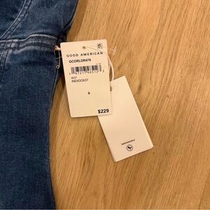 Good American Denim Corset Maxi Dress. This stylish denim dress features a corset-inspired, curve-hugging design with topstitched seams, a sweetheart neckline, and an exposed back-zip closure. NWT