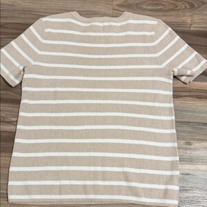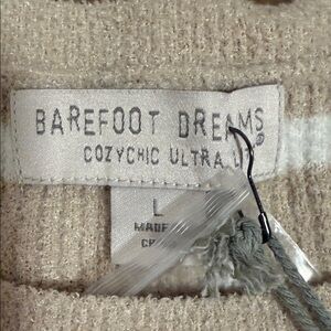 Barefoot Dreams CozyChic Ultra Lite Stone Striped S/S Top Women’s Sz. L Luxe