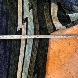 Elevate your casual wardrobe with this 90’s style Domenic Sacco crewneck sweater. Featuring a dynamic zigzag pattern in black, green, and blue, it's perfect for adding a bold touch to your look.
