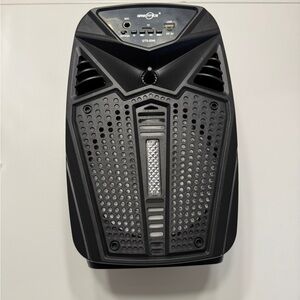 Experience powerful sound with the Wireless Speaker. This sleek black speaker comes with a microphone, perfect for parties and events. Enjoy portable audio with big sound.