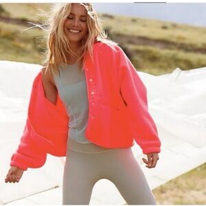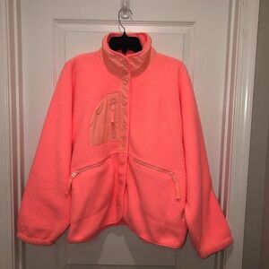 New FP Movement by Free People Neon Coral Hit The Slopes Fleece Jacket Coat sz L