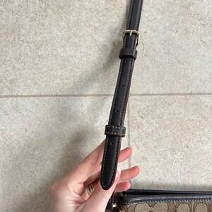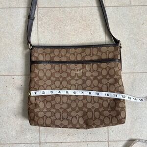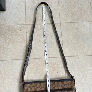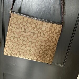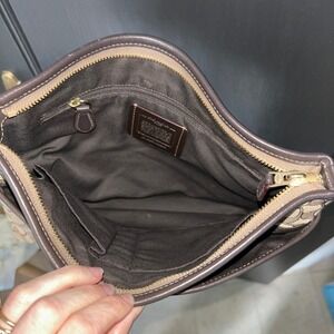 Coach Signature Jacquard Crossbody Bag Brown Tan Leather Trim Classic Y2K