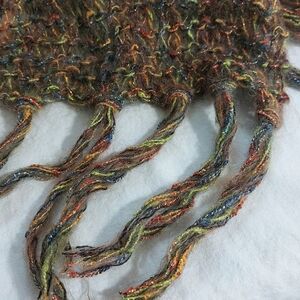 Handmade Scarf. 12 inches wide and 68 inches long with tassels. 52 inch for scarf only. Beautiful natural colors. Darker browns.