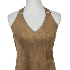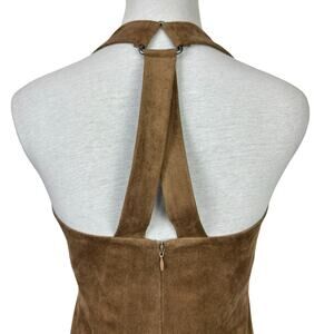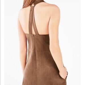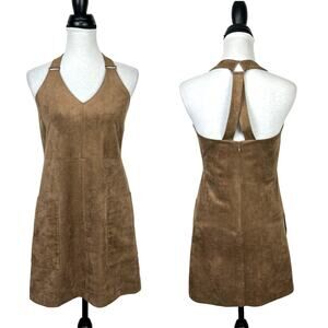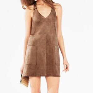 BCBGMaxazria Abbott Mocha Brown Faux Suede Cocktail Mini Shift Dress w POCKETS
