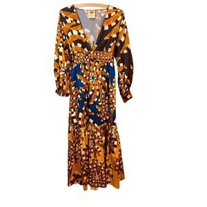 Farm Rio Mixed Bandana Long Sleeve Deep V Neck Maxi Dress - Size XS