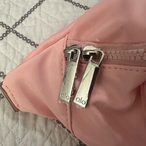 Chic light pink belt bag from ALO Yoga. Features dual zippers for secure storage.
