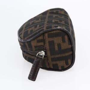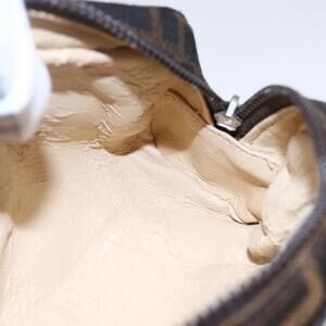 FENDI Zucca Canvas Pouch Hand Bag Black Brown Auth 154968