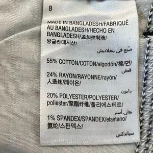 • Fabric: 55% cotton, 24% rayon, 20% polyester, 1% spandex