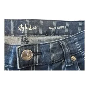 Style & Co Slim Ankle Striped Jeans Women’s Size 8 Blue Stretch Denim